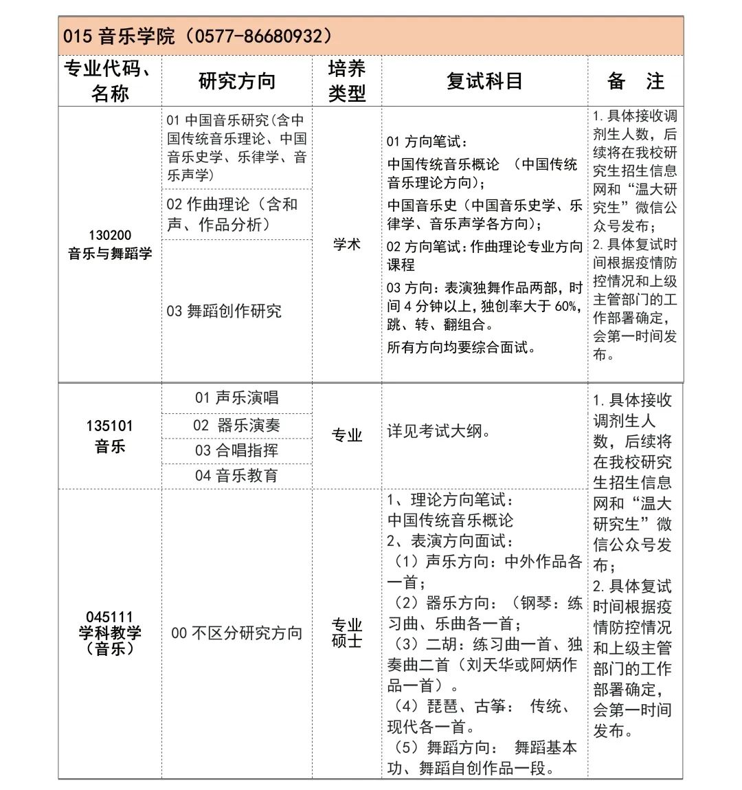 二、艺术硕士(MFA)音乐领域(135101)
