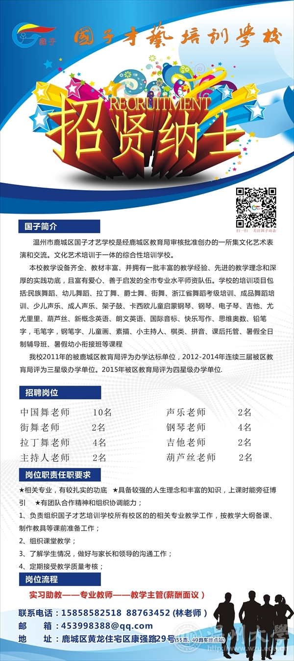 【招聘信息】鹿城区国子才艺培训学校招聘启事