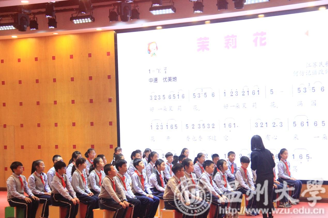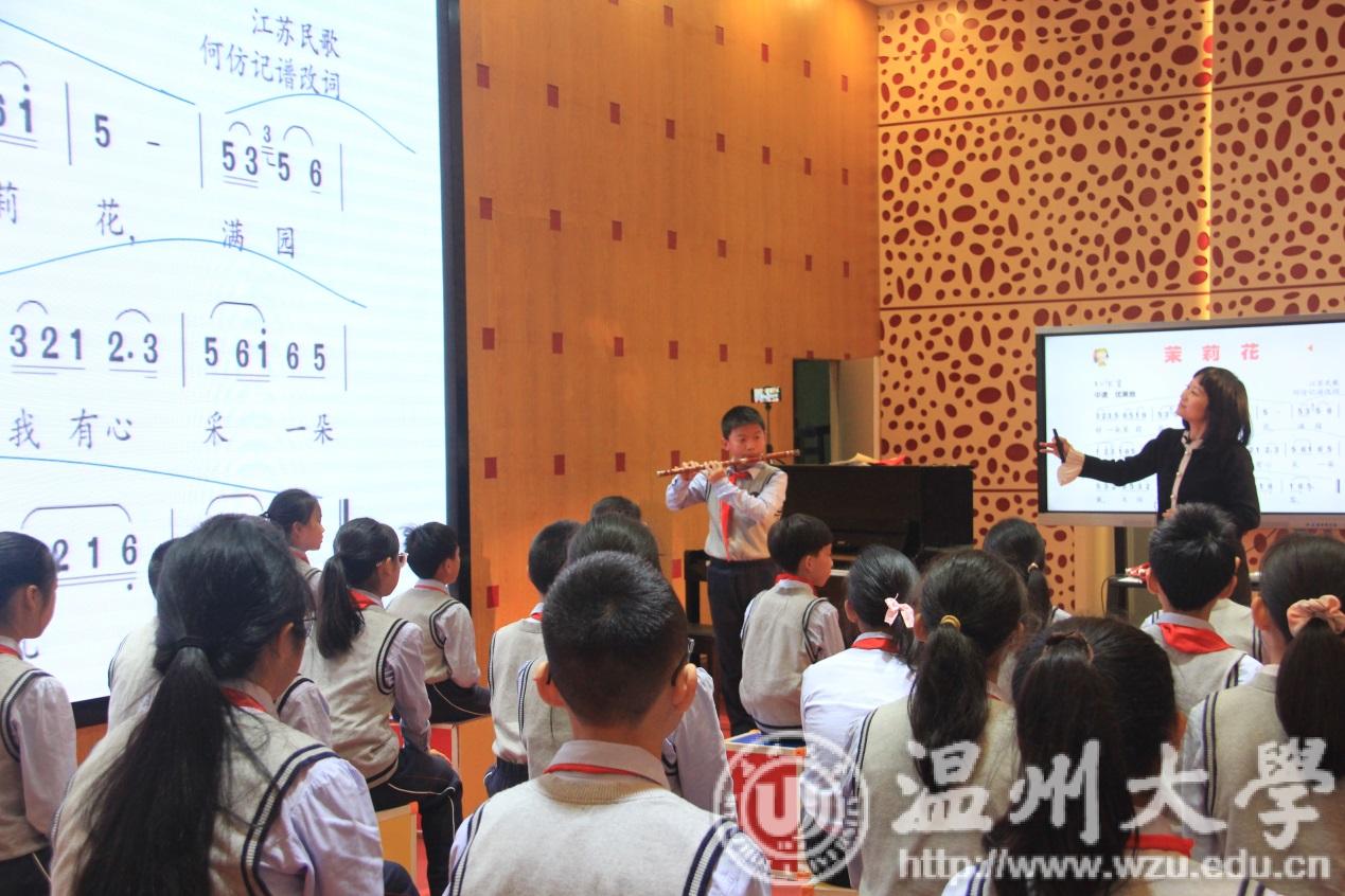 上午共有四组老师为大家精彩的课堂教学展示。首先,是周秋爱老师携二年五班的小朋友们为大家带来《彝家娃娃真幸福》。老师对于低年级段的孩子,亲切友好,通过动作为孩子们树立音高概念,用身体律动带入旋律。接着,徐丽燕老师携六年四班的同学们带来《茉莉花》。随着年级的增高,逐渐插入一些专业术语的介绍且进行系列才艺展示。通过东北扭秧歌的动作让学生更注重对下滑音的掌握。紧接着,袁逍老师携五年一班的同学们上演了不一样的《雪花带来冬天的梦》。运用节奏朗读的方式,让同学们更好的掌握节奏,并通过分声部的方式演绎了一场“梦幻的梦”。在课堂的时候更是邀请同学们运用风铃、碰铃、蛙鸣筒来为歌曲锦上添花。最后,廖亮老师带领着四年三班的孩子们为大家带来了今天的最后一堂课堂展示。老师通过将小星星图案放置在不同高度,让孩子们找到正确的音高。用轻松的方式教会孩子们抽象的概念。