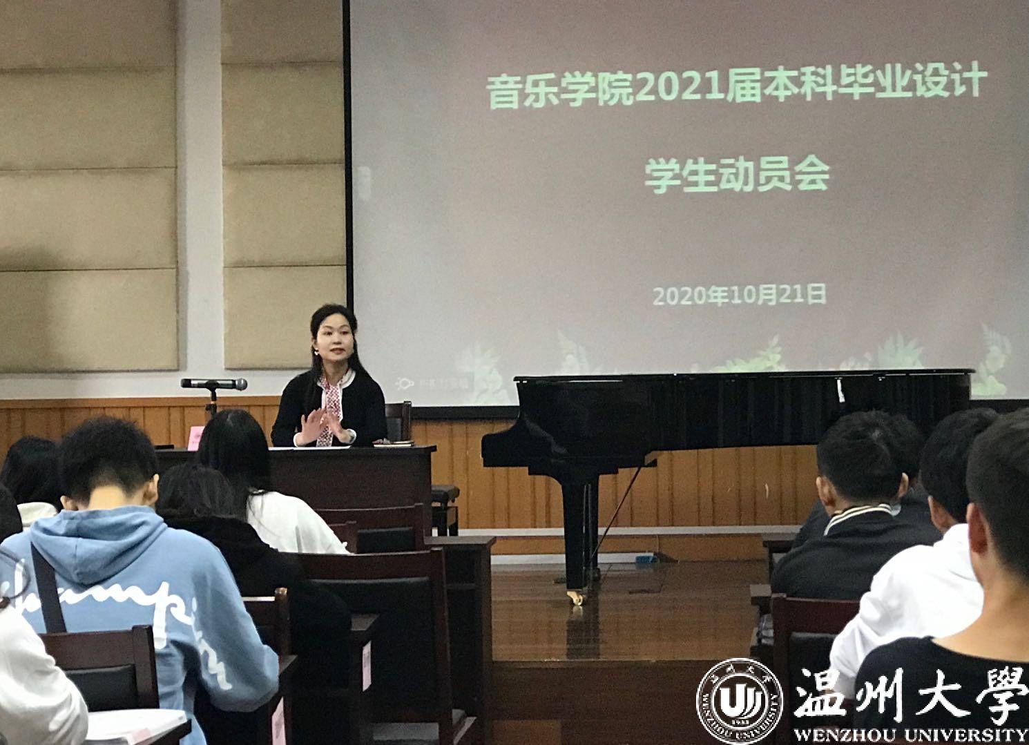 2021届本科毕业设计动员会。17级音乐学(师范)本科学生、教学科老师等参加了此次大会,大会由教学副院长蔡军老师主持。