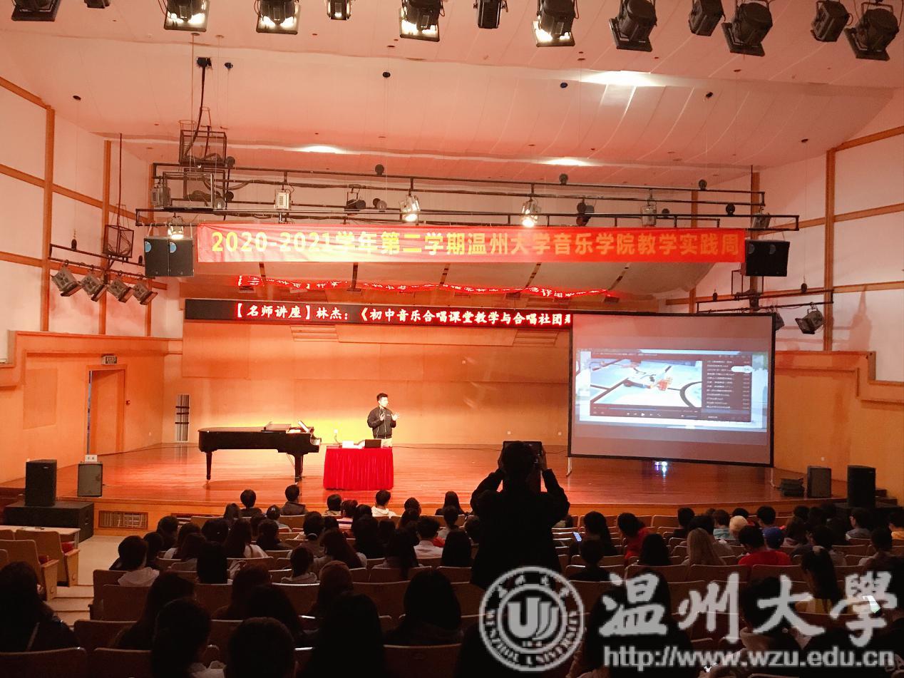 教学实践周名师讲座之《初中音乐合唱课堂教学与合唱社团那些事》主题讲座。主讲人为温州市绣山中学音乐教师、鹿城区教坛新秀、浙江省中小学生艺术节优秀指导师林杰老师。参与本次讲座的有18音表、19音教、19音表、20音乐学(师范)、20音乐学专升本(师范)的同学们。
