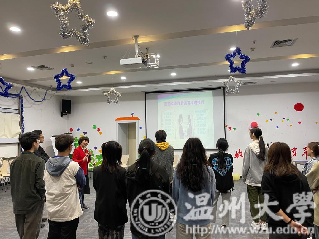 首席心理咨询师和国家二级心理咨询师张海音老师,学院心理辅导员曹清清老师、全体心理委员和部分感兴趣同学参加。