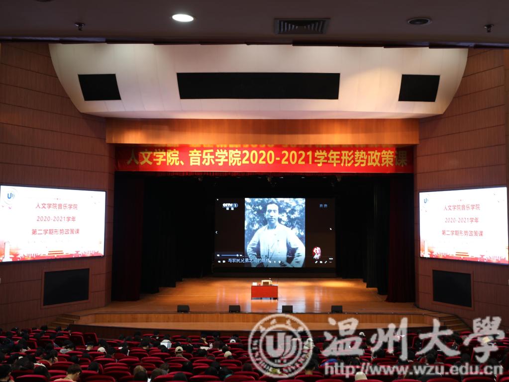 与人文学院共同开展的2020-2021学年第二学期《形势与政策》课程于育英大礼堂如期举行。两院各年级学生积极参与,共同聆听。
