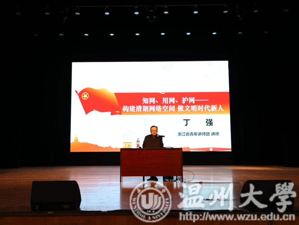 团委副书记、浙江青年讲师团讲师丁强老师主讲。丁老师联系了人类文明史,以及各个时期传播信息的媒介强调了构建网络空间天朗气清的重要性。紧接着他分别为我们讲述网络时代的三大特点及其社会心理,并介绍了相互交织、相互影响的红、黑、灰“三个地带”。最后,还列举了几个网络舆情案例,呼吁我们大学生也应自觉遵守法律和道德规范,做到依法上网、文明上网、安全上网,坚决管好自己,既不从事不法活动,也不当不法分子的帮凶,同时还要加强网络安全意识,对网络信息多保持警惕,不轻信陌生人的言语,避免落入网络诈骗陷阱,切实保护好自己的人身财产安全。