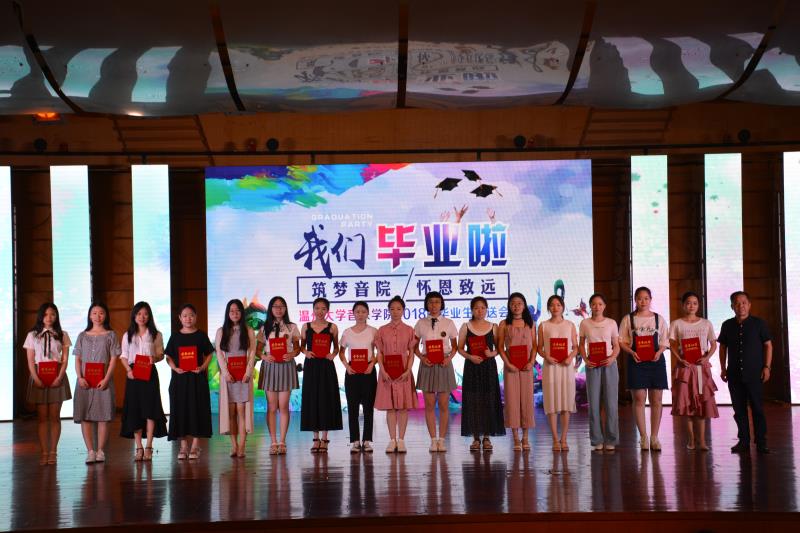 院长赵玉卿教授、书记方建敏,副院长王文韬,副院长王志毅,理论教研组主任柏互玖博士,实验室主任杨古侠,声乐教研组李成柱教授、李晓燕教授、王秀敏、易雄志、刘玉亭老师、林吟老师,钢琴教研组李杰鹏、莫颖、阮辛怡、胡如意、严伊娴、柳椰、胡敏老师,舞蹈教研组主任冯百跃教授、邱驿棠老师,教学科徐国军老师,青年二胡演奏家杨欣,与全体师生共同观看此次演出,音乐厅内座无虚席并为国家奖学金获得者唐天妤、刘骄杨,省级优秀毕业生沈靓云、卢乐,校级优秀毕业生王超、魏丹华、杜忆莲等十三名同学颁发荣誉证书。同时,方建敏书记与毕业校友联络员吕莎、杨欣怡、刘骄杨、蒋岚、席梦媛一起开启联系之门。