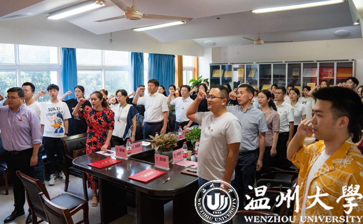 仪式后,各位领导、代表和全体学生党员面对鲜红的党旗,整齐划一、装严肃立,郑重举起右拳,重温入党誓词,在铿锵有力的宣誓中,全体党员重新感受入党时的荣誉感和使命感,更加坚定了跟党走的信心和决心。