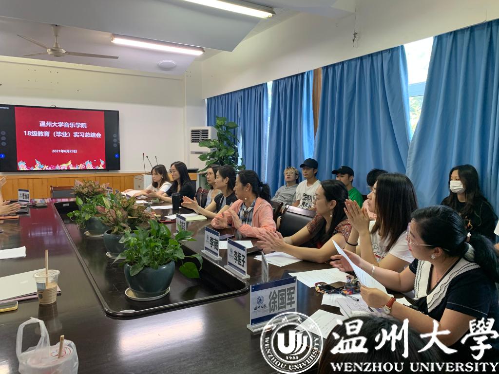 会议伊始,实习负责人李葳老师对本次18级音乐学(师范)学生实习工作进行了总结讲话,肯定实习学生们的优异表现,并对学生们的将来寄予了厚望。随后,18音表班级叶豫丹同学作为学生代表进行了实习总结发言;18音教班级叶婧婧同学作为绣山中学实习小组组长,徐双双同学作为温州市第二外国语学校实习小组组长,俞婷同学作为色情视频