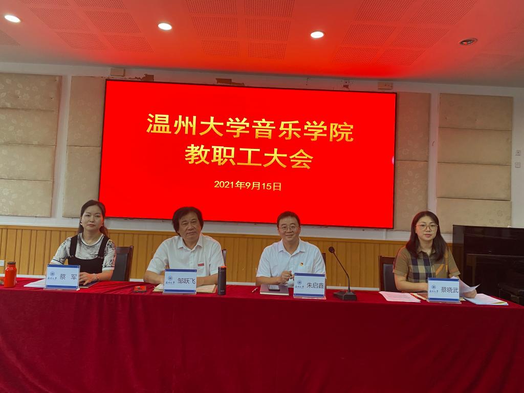 教职工大会,院长邹跃飞、党委书记朱启鑫、副院长蔡军、副书记蔡晓武以及学院全体教职工参加会议,会议由党委书记朱启鑫主持。