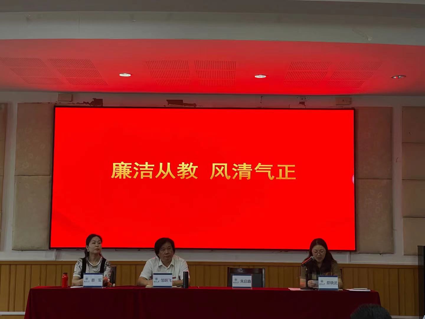最后,蔡晓武副书记以“廉洁从教,风清气正”为中心进行了党风廉政专题讲话,进一步加强师德师风建设,规范教师从教行为,营造风清气正的育人氛围。