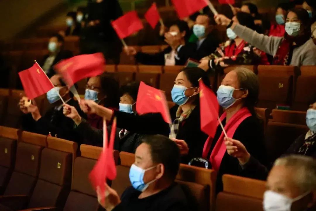 演员们情感真挚的表演,征服了观众,雷鸣般的掌声不绝于耳。最后一幕中,当曾联松设计的五星红旗高高飘扬时,全场为之振奋,一同挥舞手中的国旗,许多观众深受感染,流下热泪。
