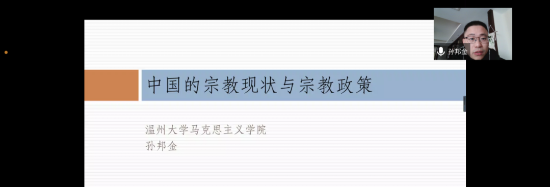 马克思主义学院副院长孙邦金老师主讲。孙老师首先就目前我国宗教情况与历史渊源向我们介绍了党的宗教工作基本方针与国家宗教管理的基本原则。随后,分别讲述了马克思主义宗教观的哲学基础,基本内容和马克思主义宗教观的中国化。最后,老师着重强调宗教问题无小事,尊重宗教信仰自由的同时要准确识别、远离邪教,提高自身防范能力。