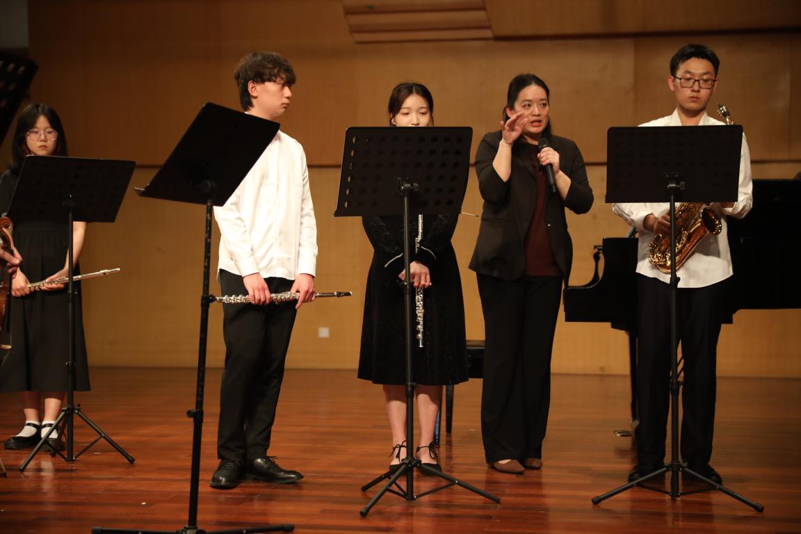 在天瑞音乐厅开展《小编制合奏的管与弦——寻找与融合》讲座及乐队排练实践。主讲人为赵光雯老师。