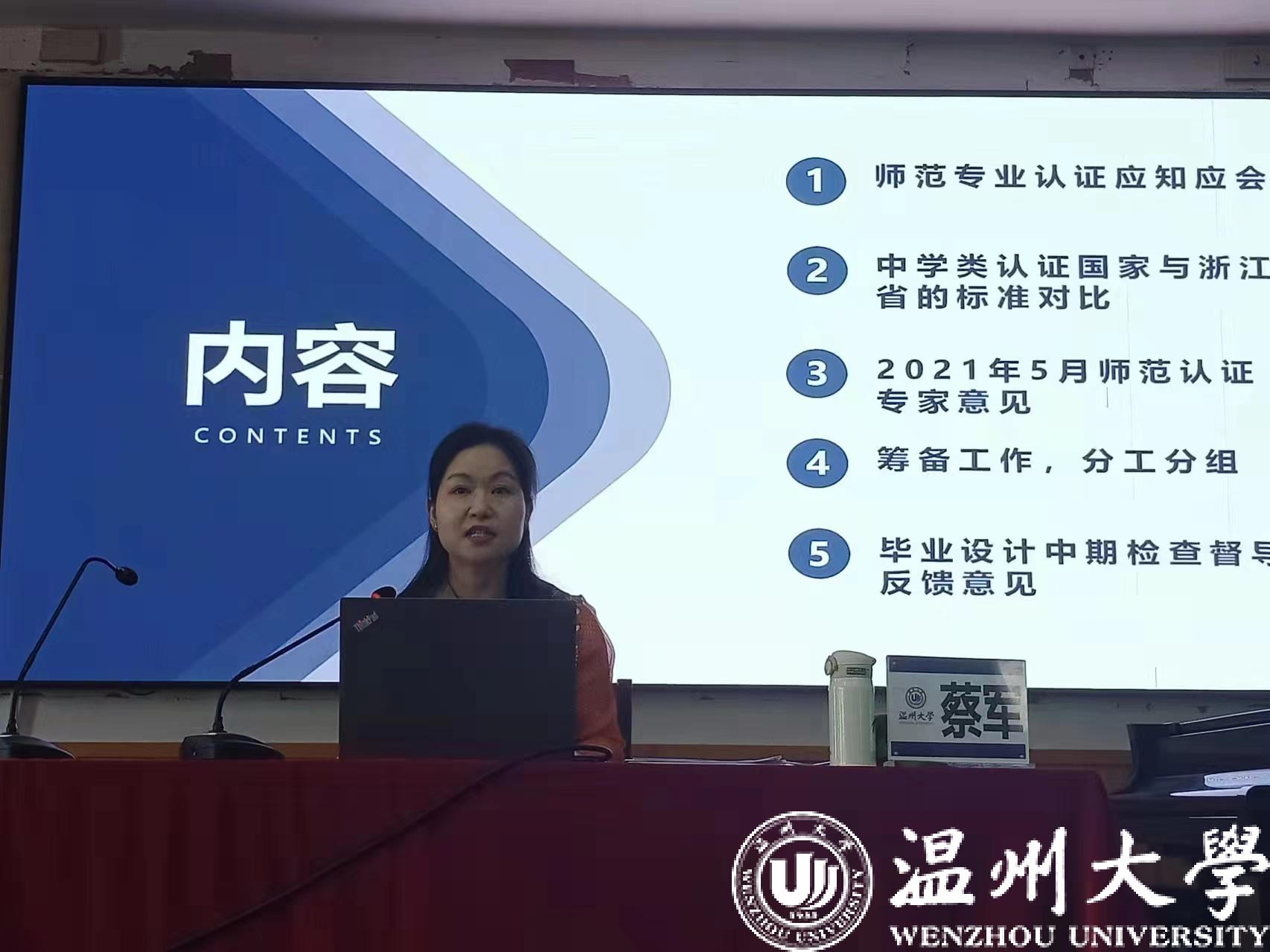 师范类专业认证材料清单、中学类认证国家与浙江省的标准对比、师范认证专家意见等,部署师范认证筹备工作,公布了毕业设计中期检查督导反馈意见。