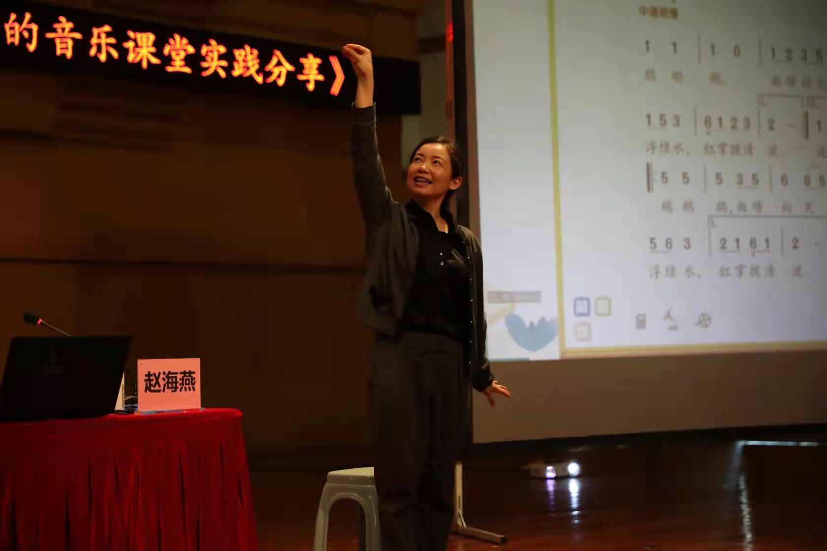 邀请了赵海燕老师在天瑞音乐厅开展了《走向发现快乐的音乐课堂》的专题讲座。