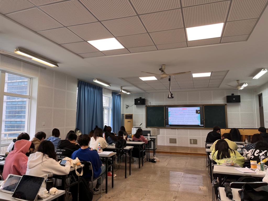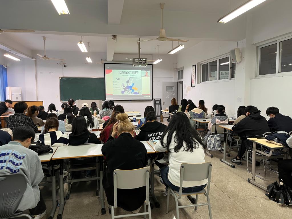 马克思主义学院何玲老师主讲。何玲老师从俄乌战争谈起,表明了现当下国际的紧张态势。接着,何老师分析了俄乌战争的背景,并指出中美贸易战的实质、原因和新时代中国在贸易战的压迫下所呈现出的新面貌。最后何玲老师表示,中国绝不会对外国势力妥协,而是必将取得更大的成就。