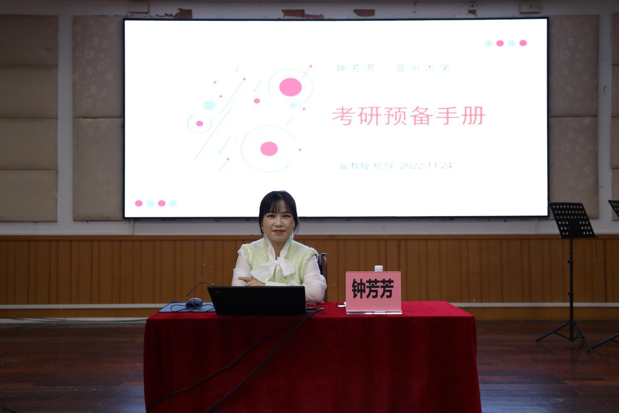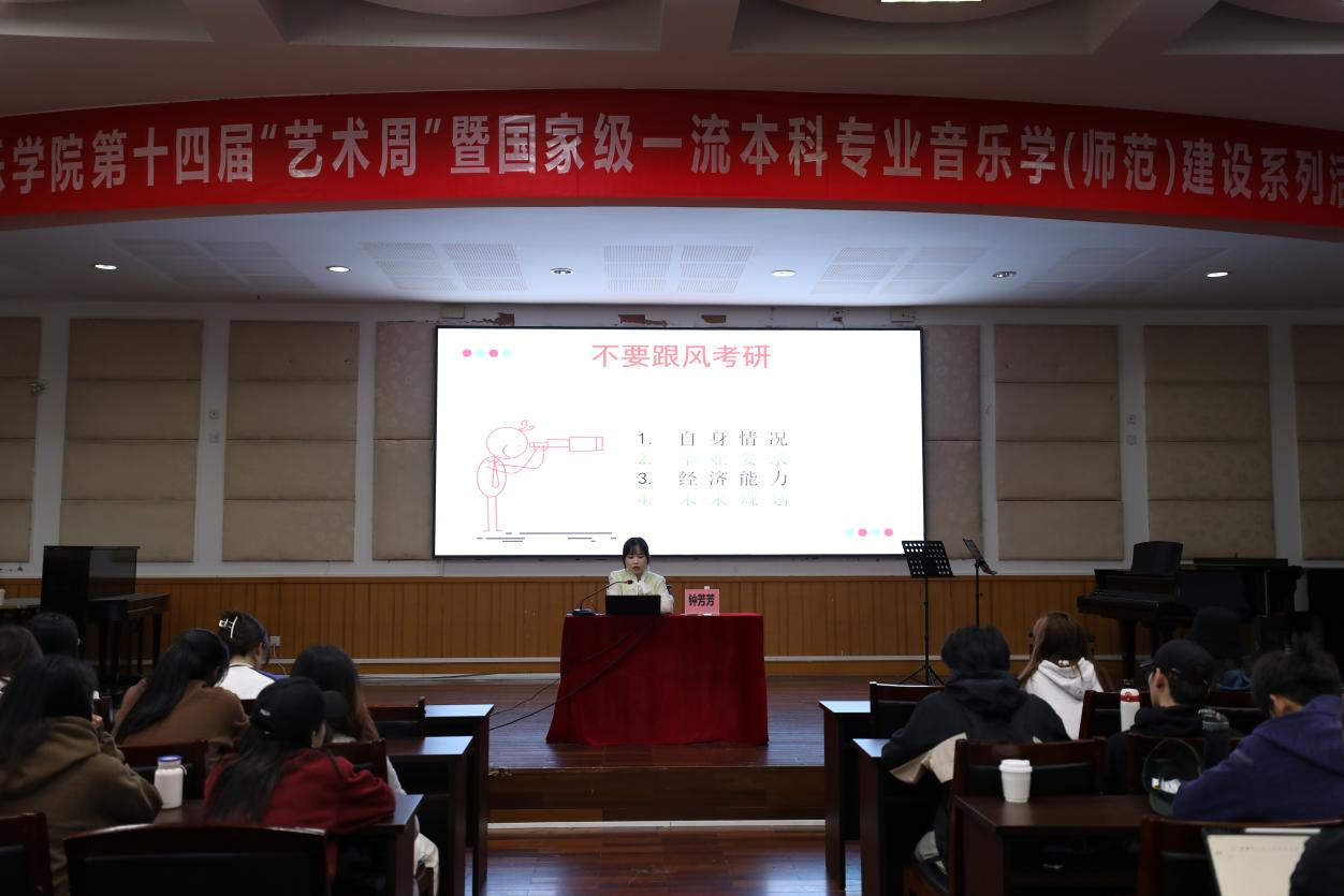 第十四届“艺术周”暨国家级一流本科专业音乐学(师范)建设系列活动之讲座《考研预备手册》。参加此次讲座的学生有20音乐学(师范)、21音乐学(师范)、21舞蹈教育(师范)、22舞蹈教育师范、22音乐学(师范)和22音乐学专升本(师范)的部分学生。