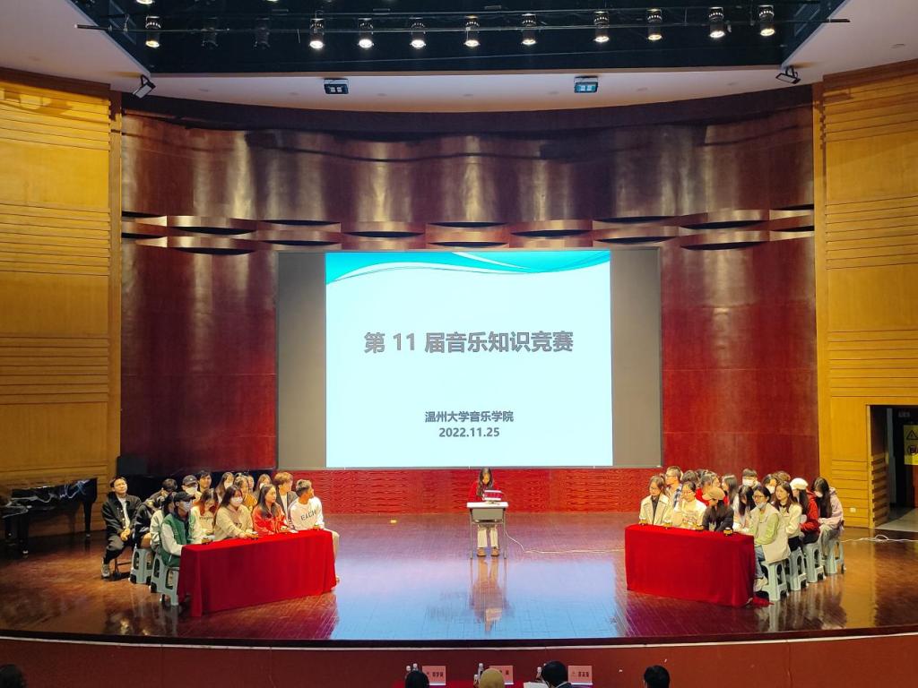 第十一届音乐知识竞赛在南校音乐厅举行。参与竞赛的人员有20级和21级音乐学(师范)专业的学生,评委有邓深海老师、李葳老师、郑梦娴老师、周励光老师。