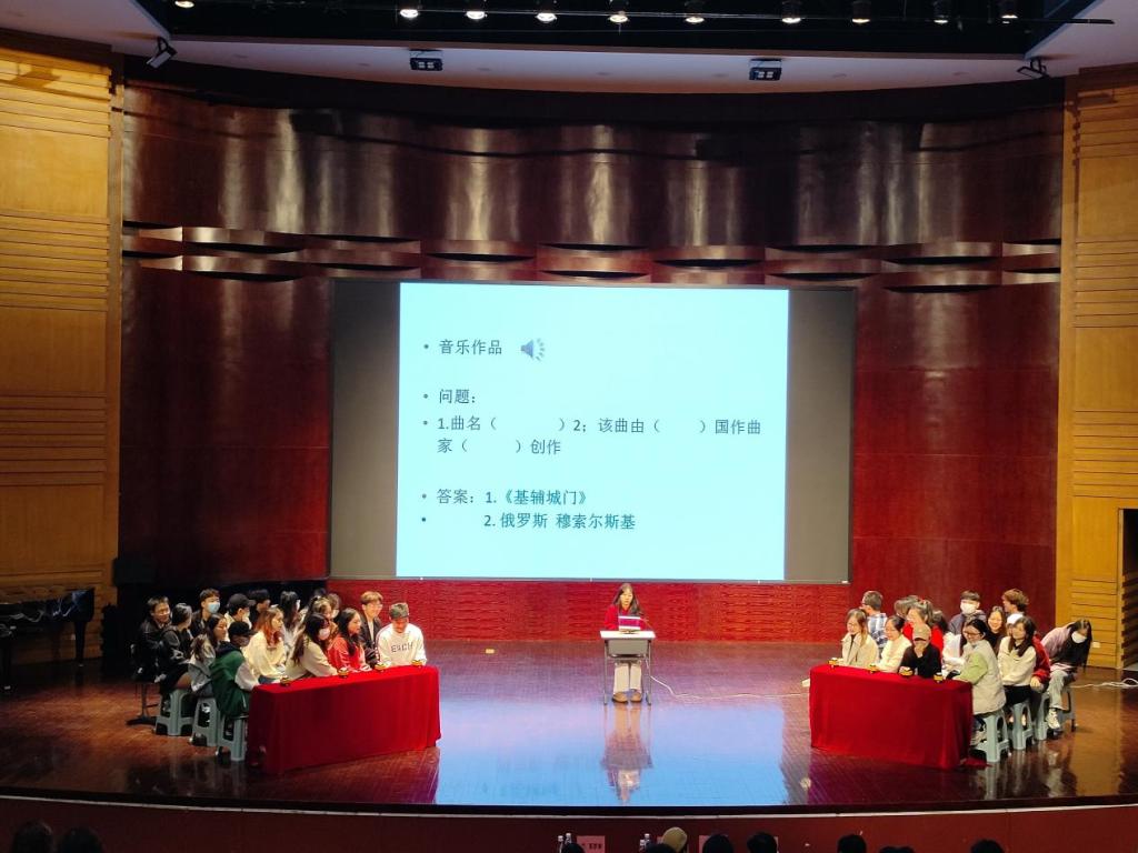 比赛分为必答题和抢答题。必答题中分为西方音乐作品听辨和中国音乐作品听辨。评委老师在每道题答完后,都会对每道题中涉及的曲子、作曲家进行背景解释,让现场观众和台上参与竞赛的学生对作品有更加深刻的了解。