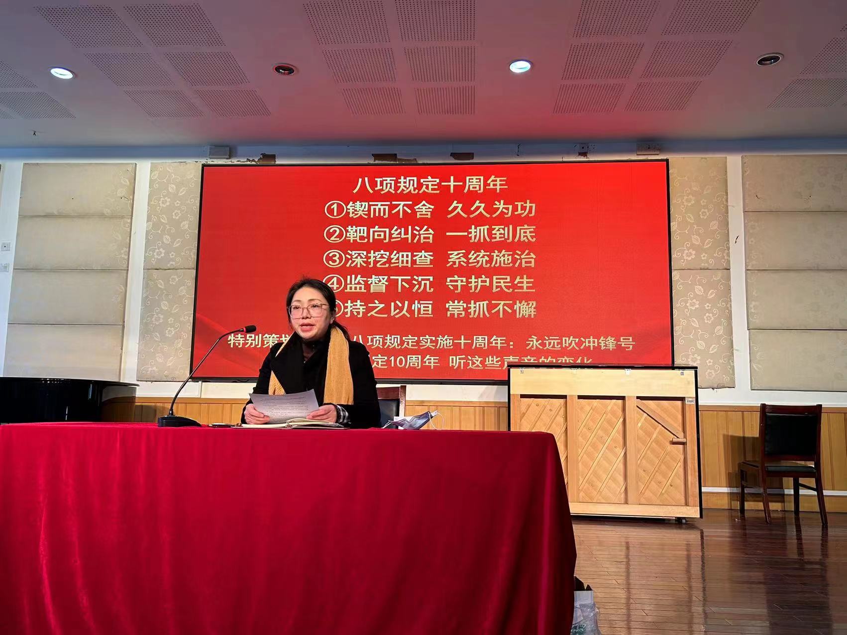 蔡晓武书记在带领全体教职工学习的过程中,分别以“锲而不舍 久久为功”、“靶向纠治 一抓到底”、“深挖细查 系统施治”、“监督下沉 守护民生”、“持之以恒 常抓不懈”五个标题向各位老师讲读了中央八项规定颁布十年以来我们党所取得的成绩,同时号召全体教师应该始终将中央八项规定作为自己生活中的一条底线,持续抓、精准抓、坚决抓,始终做到不敢腐、不能腐、不想腐,将腐败置于“阳光”之下,保持清正廉洁,始终做到学为人师、身正为范。