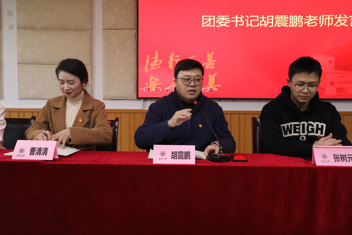 团委书记胡震鹏老师、团工作指导老师曹清清老师以及团委学生会成员。