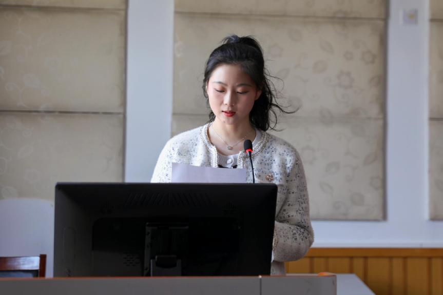 来自21级舞蹈教育专业的学生代表杨蕊分享了参演的心路历程。她讲述了同学们在节目排演期间遇到的各种困难与挑战,将自己在节目录制过程中收获的专业技能和深切感悟娓娓道来。