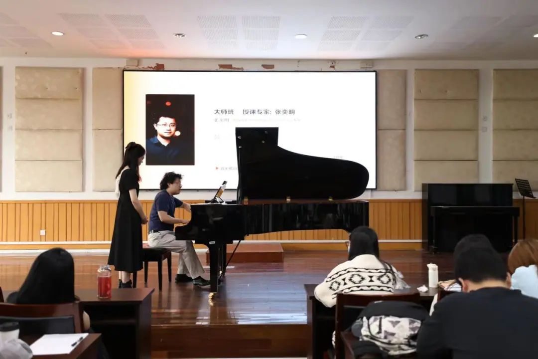 中国钢琴音乐研究中心专家张奕明的大师课,二楼报告厅座无虚席,学子们热情高涨,现场的师生们翘首以盼,共同期待着张奕明教授带来一场富有激情、生动精彩的钢琴大师课。