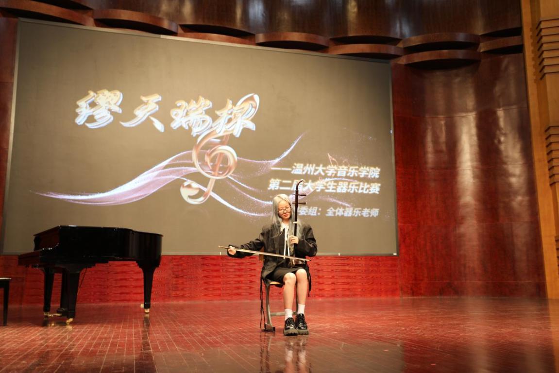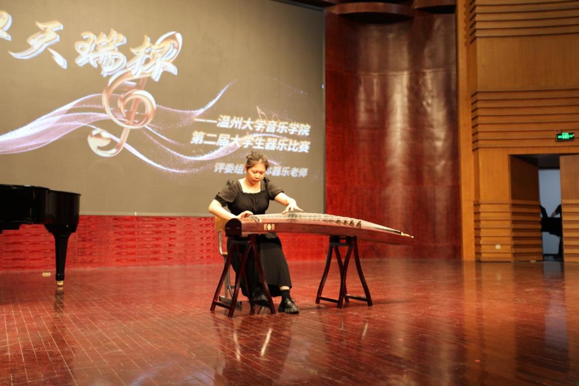 比赛伊始,后台等待的选手们都拉紧心中的弦,焦急等待着上台比赛。几位古筝专业的选手给我们留下了深刻的印象,古筝的曲调深厚、灵透、柔和,音韵较为明亮、清脆、含蓄,潇洒飘逸,纯朴古雅。它的空灵之声令人忆起那山谷的幽兰,高古之音仿佛御风在那彩云之际。还有琵琶乐器优美细腻,如同一朵娇艳的花朵般绽放,让人感受到生命的美好。多种乐器用美妙高亢的声音对抗,经过两个小时的激烈角逐,比赛结果也新鲜出炉: