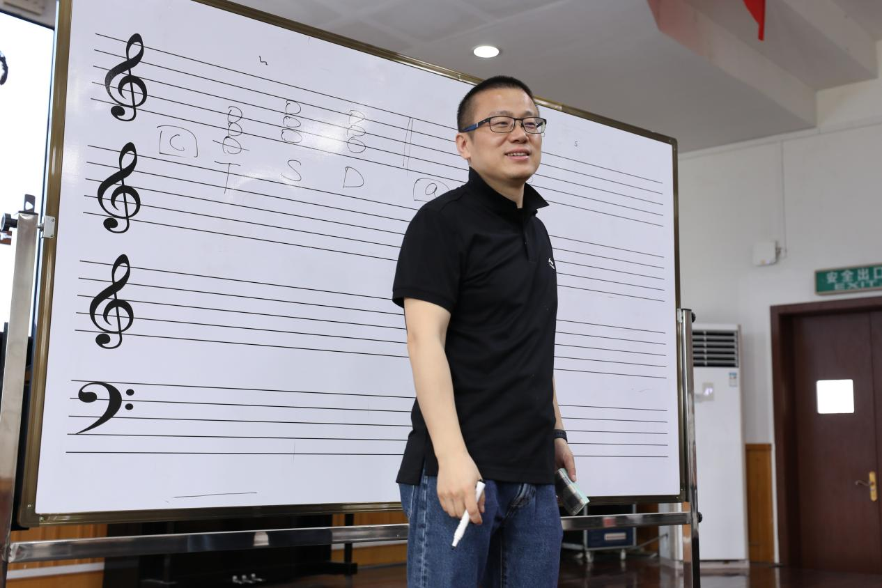 后面老师指出,我们在听流行歌曲或者在演唱会的时候,我们也可以用耳朵去听和声的进行,了解不同曲子的和声发展。我们发现大部分流行歌曲都可以用同一种和声的进行。每首歌曲都有不同的主题动机,当有了动机手段了之后,我们可以采用三种比较实用的方法。第一种:重复。第二种:模进。第三种:节奏相仿。在介绍节奏相仿的方法时,老师给我们即兴创造了几句歌词,让我们根据歌词的停顿和强调,尽情创造歌曲旋律。在仅剩的时间里,张教授又给我们丰富了更多和声的用法,开阔我们的视野,打开我们的思路,让我们对和声有了更新的认识。张教授把我们带入了和声的世界,不断感受运用不同和声的魅力所在。