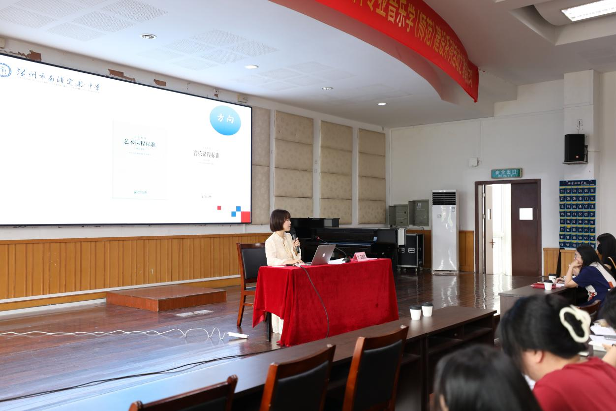 在最后,王欣欣老师指出,面对新的艺术指导标准,我们的课堂教学应该探索在大单元教学的基础上进行新的教学模式,把知识、技能、能力的综合培养作为目标,把知识间的内在关联和内容结构化正式落实。这不仅为学生解读了近年来艺术教育行业的政策风向,而且为音乐学(师范)的学生在备课时拓宽了思路,是一次十分有意义的教育研习讲座。