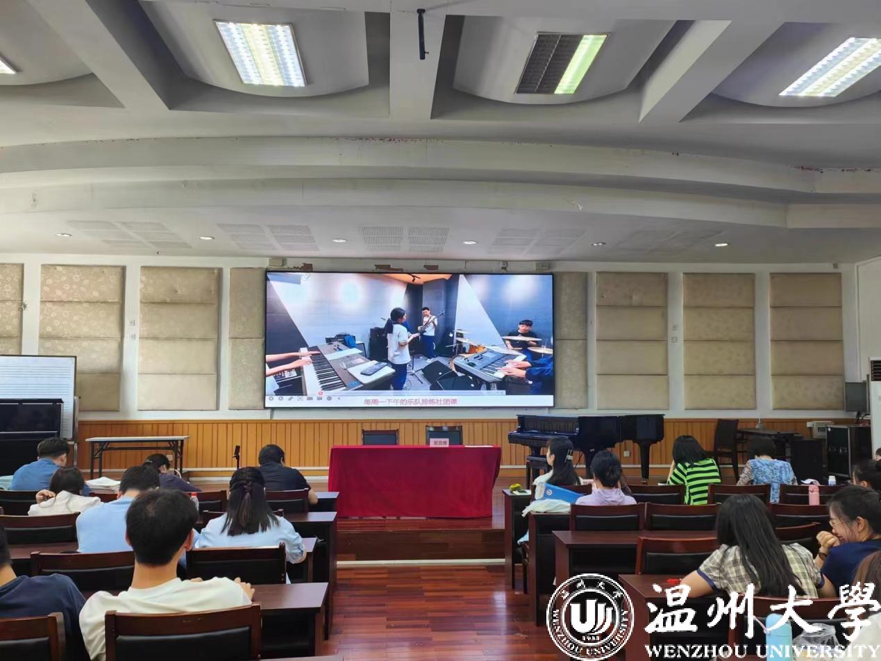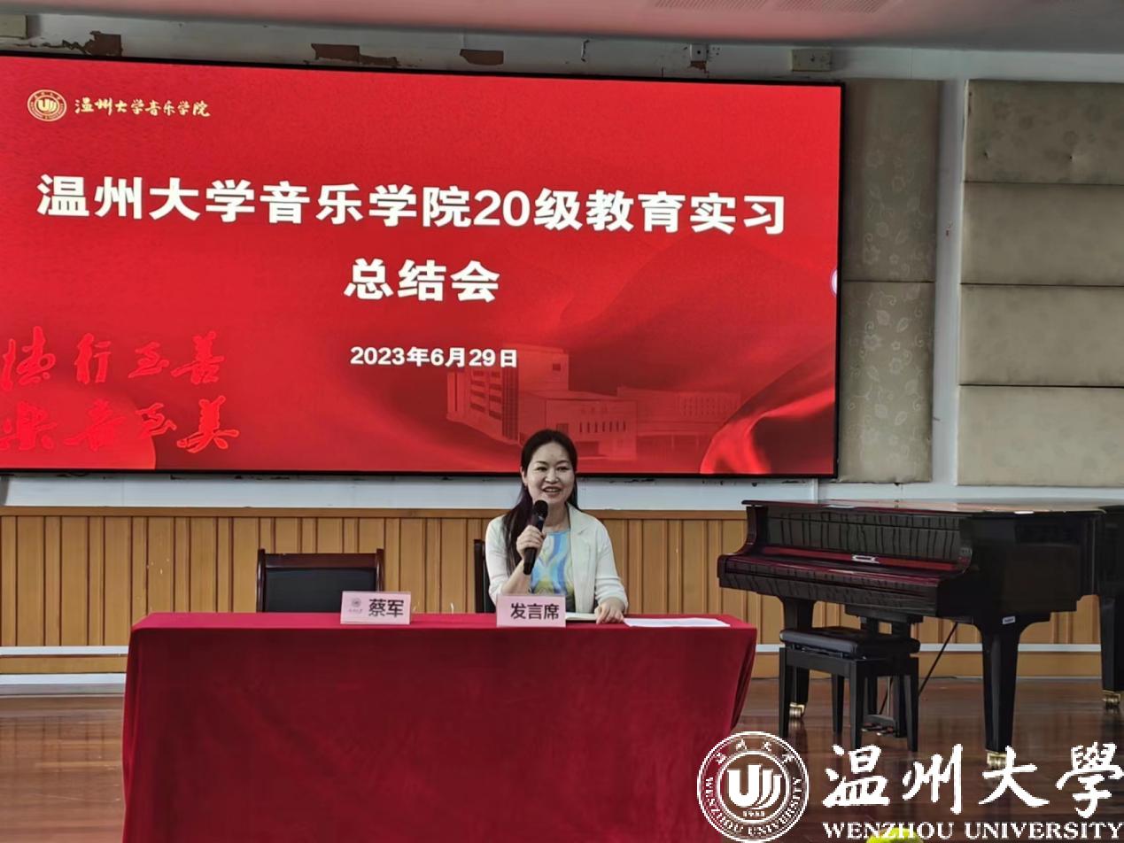 会议伊始,实习负责人李葳老师对本次20级音乐学(师范)学生实习工作进行了总结讲话,肯定实习学生们的优异表现,并对学生们的将来寄予了厚望。随后,20音教班级周景宜同学作为温州市第二实验中学实习小组组长,谢多加同学作为温州市第二外国语学校实习小组组长,张树元同学作为温州市第十二中学学校实习小组组长,李文昊同学作为温州市第二中学(滨江校区)实习小组组长等,结合了音频、视频和PPT等,分别从实习学校的简介、教师团队、教学活动、班主任日常、个人感悟、工作内容、音乐课堂、实习收获等方面进行了精彩发言,他们不仅为大家展现了此次实习的成果,也是一次深刻全面的实习总结。