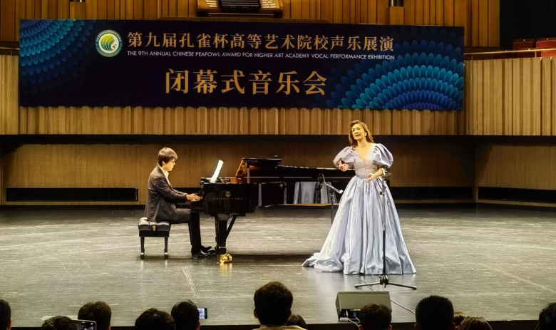 副教授祝海燕以97.33的高分拔得头筹,斩获美声组“金孔雀奖”第一名。同行评价她是“以纯正的音色,沉稳的台风,精彩的演绎,优异的成绩,是当之无愧的金孔雀”。