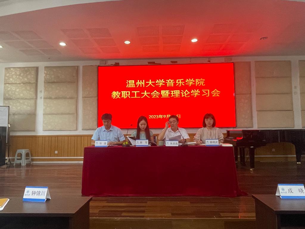 新学期全院教职工大会暨理论学习会在音乐楼201会议室召开,本次会议由院党委书记朱启鑫主持,学院全体教职工参加。