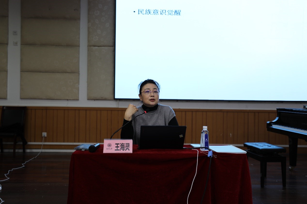 音乐教育系副系主任王海灵老师。21音乐学(师范)、22音乐学(师范)、23音乐学(师范)、22音乐学专升本(师范)、23音乐学专升本(师范)班级学生出席了本次活动。本次讲座由音乐理论系主任吴春艳老师主持。