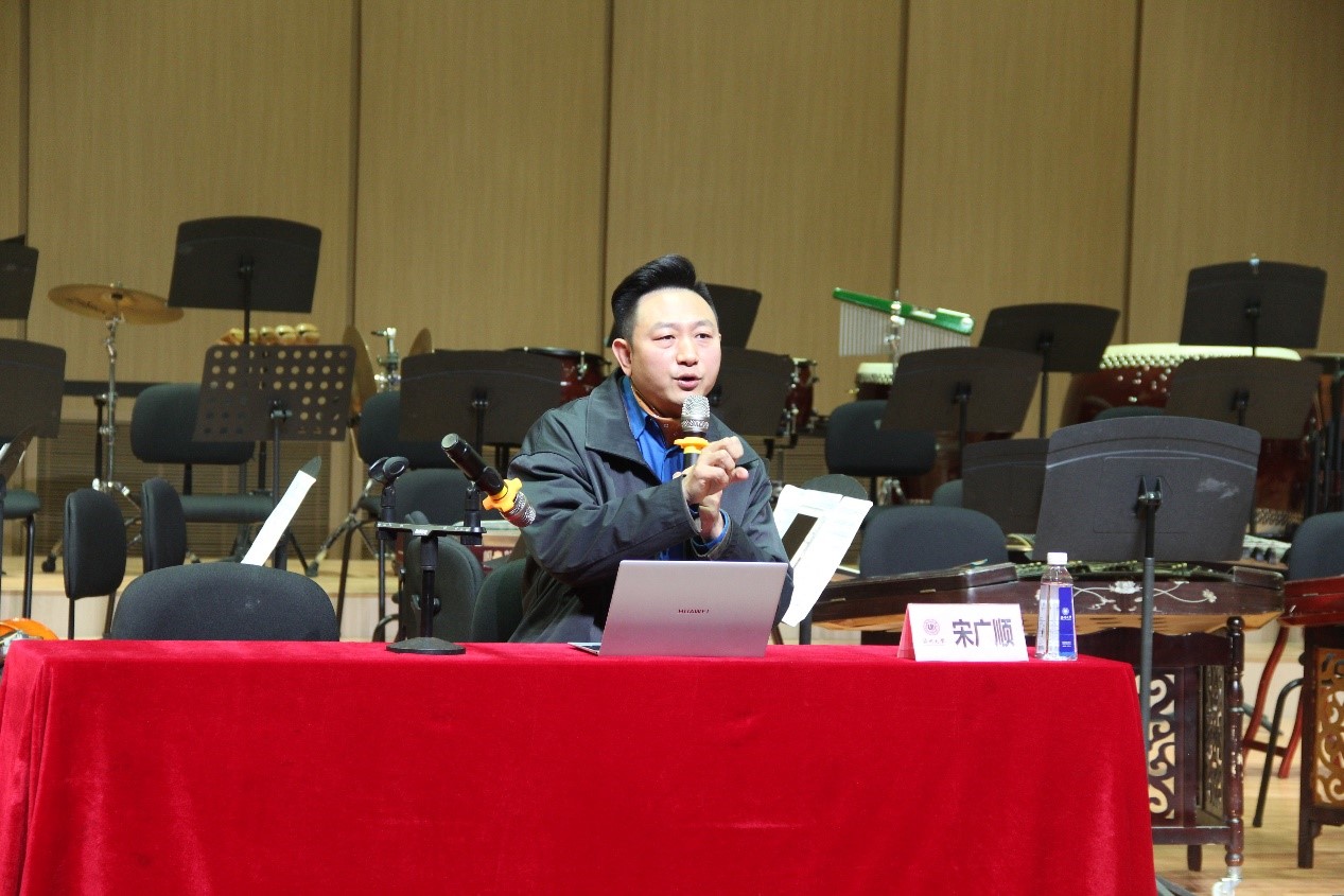 十五届艺术周系列活动之讲座《民族管弦乐团的形成和发展》在天瑞音乐厅举行。本次讲座主讲嘉宾是器乐理论系宋广顺教授。21音乐学(师范)、22音乐学(师范)、23音乐学(师范)、22音乐学专升本(师范)、23音乐学专升本(师范)班级学生出席了本次活动。