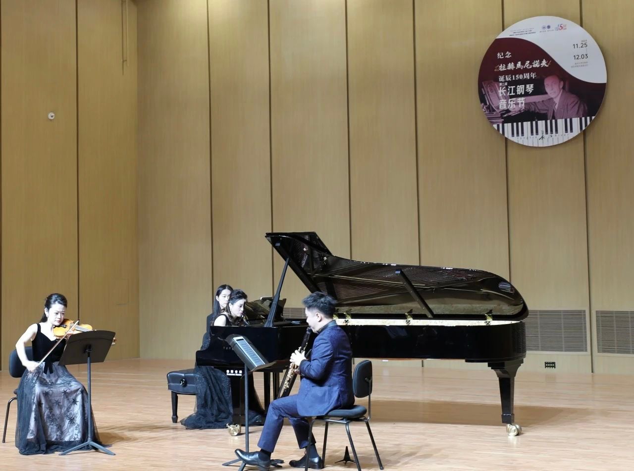 本场音乐会在返场乐曲《克莱兹默舞曲》中随着节奏与旋律愈加激烈中圆满落下帷幕。最后陈露雯、蒋乐乐、齐柯等演职人员与到场嘉宾一同在此起彼伏的掌声中合影留念结束了本次纪念拉赫马尼诺夫诞辰150周年暨第二届“长江钢琴”音乐节系列活动。