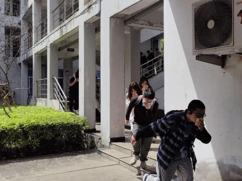 顺利开展师生消防演习活动,院党委书记朱启鑫,院党委副书记蔡晓武,学工办全体辅导员,实验室实验员,教师代表,班级安全委员,班委代表参加了演习。