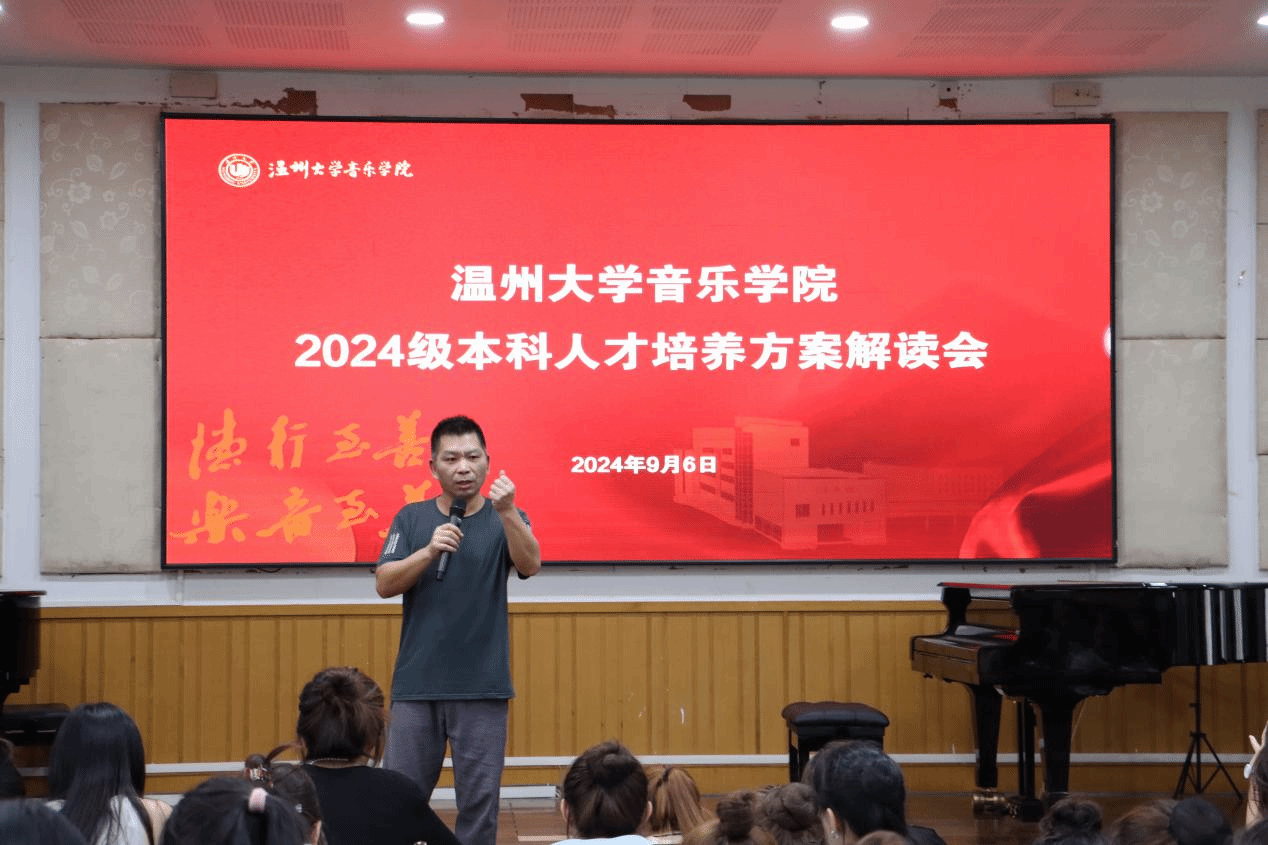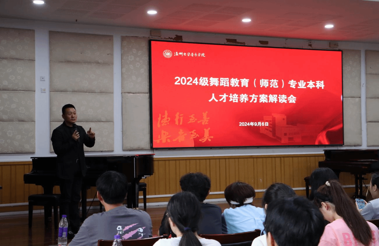 在音乐楼201学术报告厅顺利召开2024级本科人才培养方案解读会。学院教学副院长、专业负责人、教学科以及24级音乐学(师范)、24级舞蹈教育(师范)共计150位新生参加了会议。会议由教学科长成晓主持。