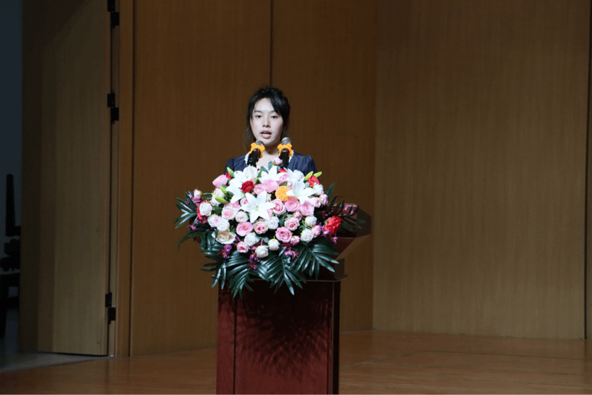 2021级音乐学王思洁作为老生代表发言。作为学姐,她建议24级的新生们积极参加活动,积累宝贵经验 ; 学校不仅是一个学习技能和理论的地方,更是一个充满活力和创意的乐园。在实践中锻炼自己,拓宽视野,积累宝贵经验,结交志同道合的朋友。