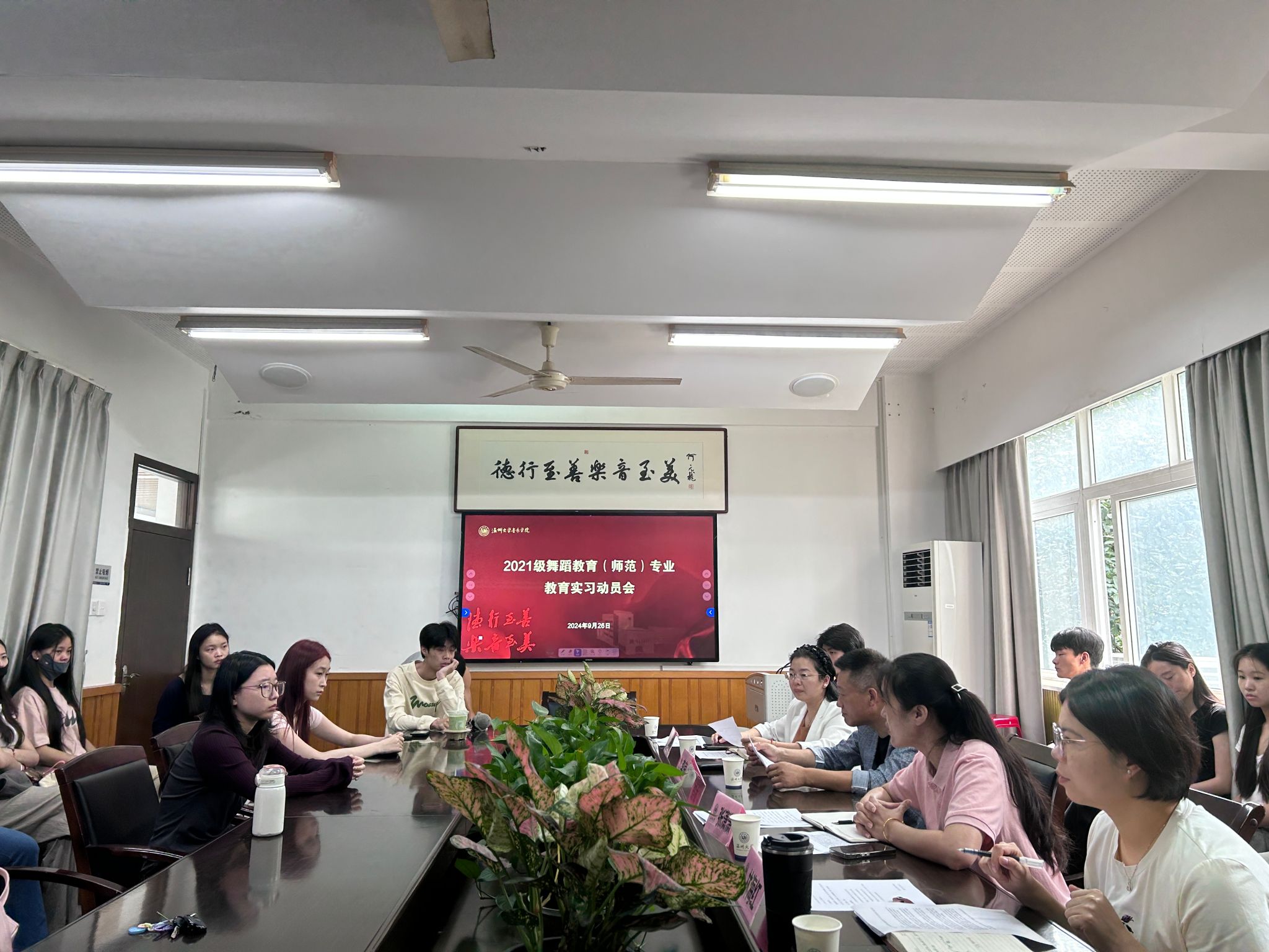 于2024年9月26日下午在音乐楼203举行了动员大会,教学副院长张潇潇、党委副书记林海红、舞蹈教育(师范)专业负责人李良、教学科科长成晓、实习负责人李恒子以及舞蹈教育(师范)专业全体毕业生参加了本次会议,会议由成晓主持。
