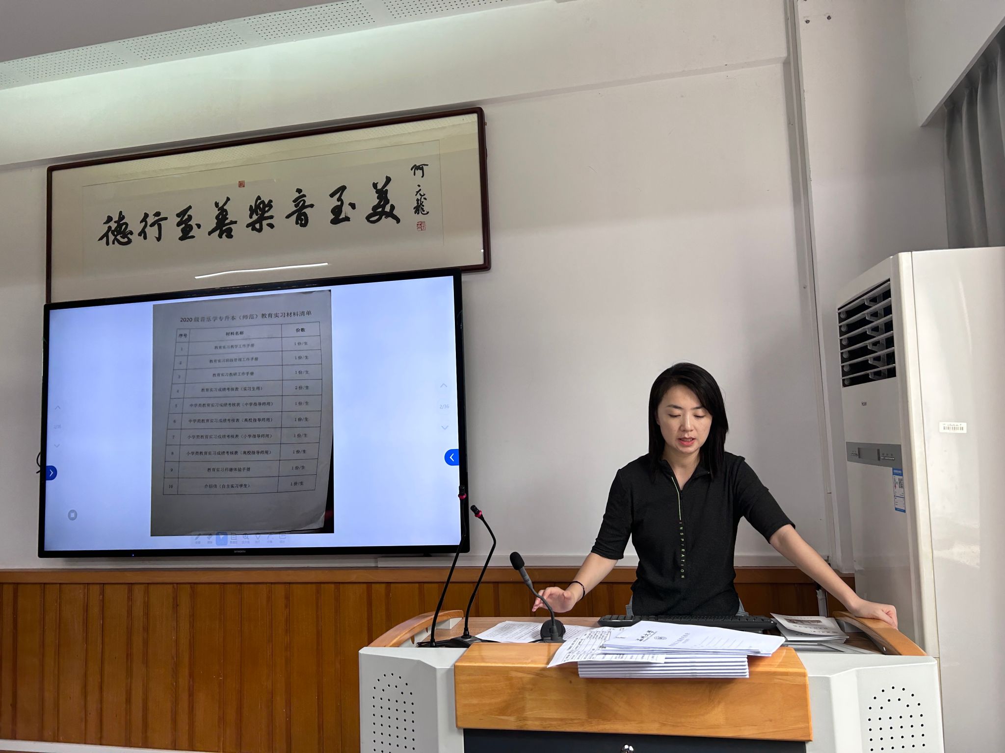 教学科科长成晓老师分发了教育实习的相关材料,并对电子版材料和纸质版材料的注意事项和上交时间做了说明。最后,实习负责人李恒子老师介绍实习计划,详细地讲述了实习日程进程与安排、实习要求及实习材料填写内容的要求与填写方式,并对学生门的问题进行了一一解答。
