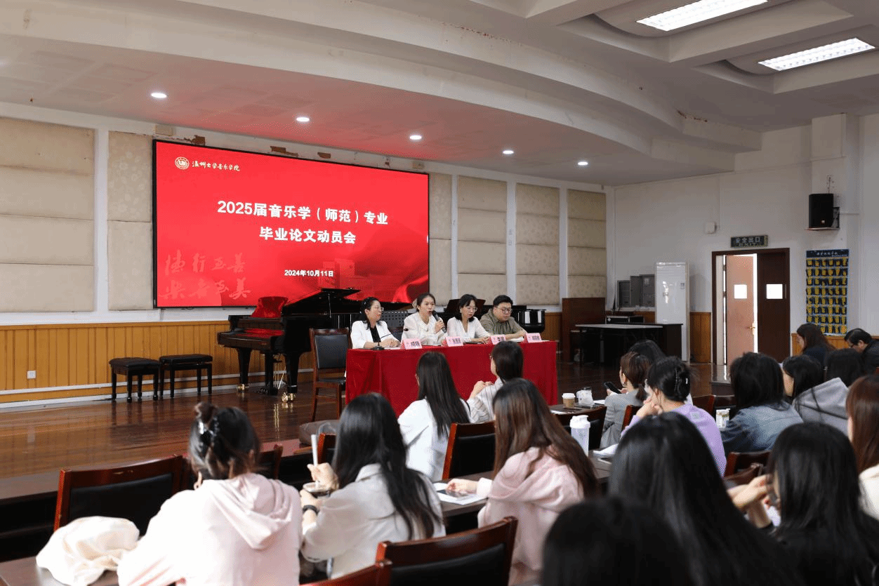 于2024年10月11日上午在音乐楼201学术报告厅举行了动员大会。教学副院长张潇潇、教学科科长成晓、全体音乐学(师范)专业毕业班学生参加此次会议。
