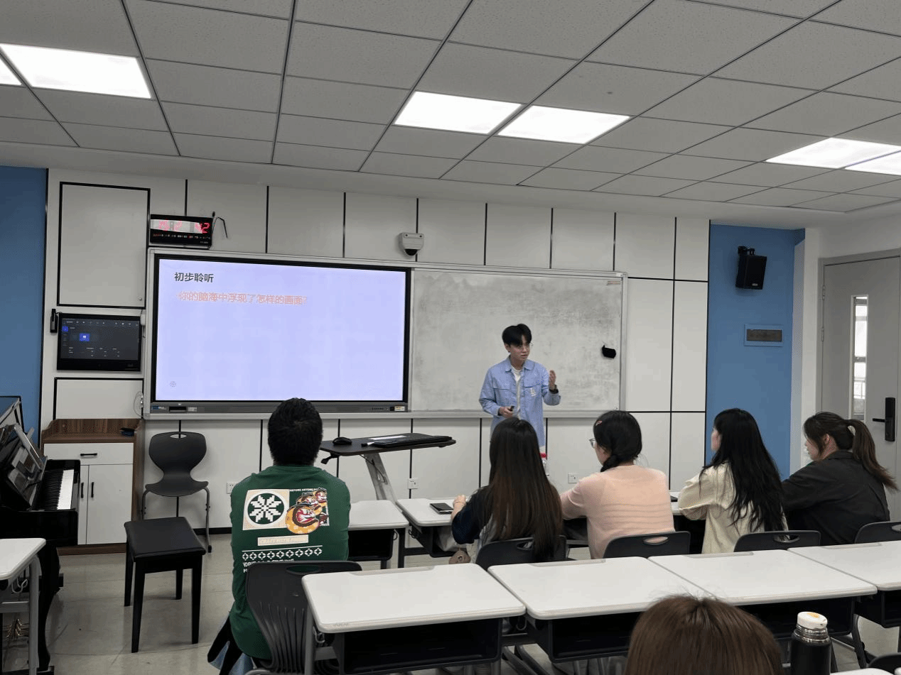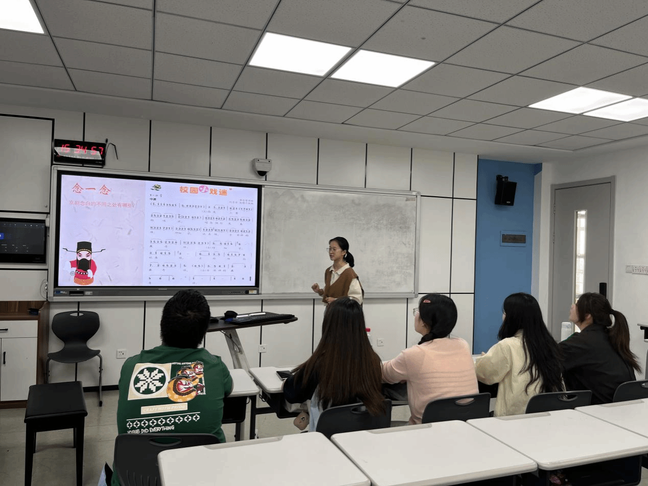 本次教学磨课以现场授课的形式,在外语楼408教室举行,每位同学讲课限时10分钟。李欣业讲授劳动号子《黄河船夫曲》,顾晓璐讲授京剧《校园小戏迷》。