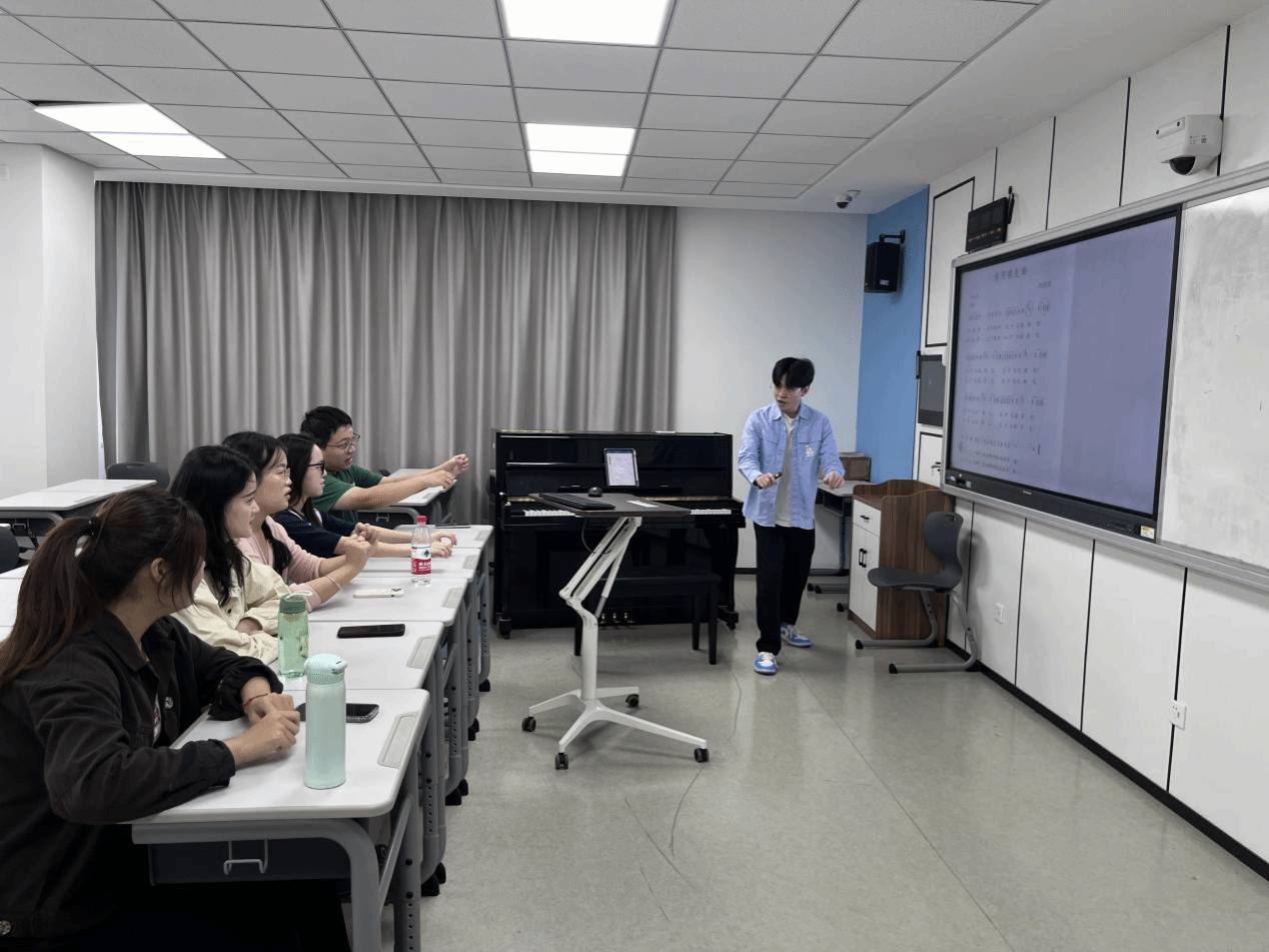 于10月12日举行浙江省师范技能竞赛磨课。21级音乐学(师范)专业李欣业、顾晓璐两位同学参与磨课,教学副院长张潇潇副教授、声乐系刘玉亭副教授、钢琴系陈露雯博士、音乐学系李葳老师担任评委。