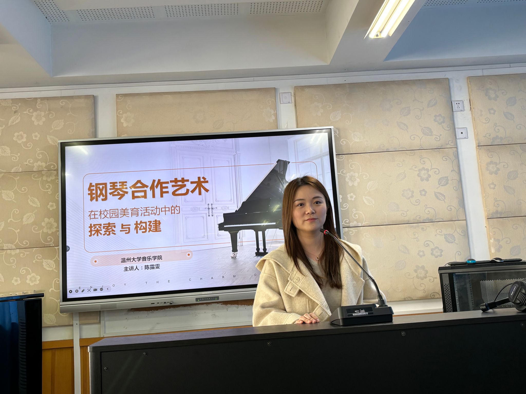 本次培训班非常荣幸邀请到了多位资深音乐教育专家,他们分别是陈露雯老师、严伊娴老师、阮辛怡老师和陈颖老师。陈露雯老师以《钢琴合作艺术在校园美育活动中的探索与构建》为主题,深入探讨了钢琴合作艺术在校园文化建设中的重要性和实践方法,为学员们提供了宝贵的指导和启发。严伊娴老师则带来了《中小学音乐教材歌曲弹唱与案例实践》课程,通过理论与实践相结合的方式,帮助学员们掌握教材歌曲的弹唱技巧,提升了他们的教学实践能力。阮辛怡老师分别就《西方古典钢琴文献素养与演奏探究》和《中国钢琴文献素养与演奏探究》两个主题进行了深入讲解,让学员们对中西方钢琴文献有了更全面的认识和理解,增强了他们的演奏素养。陈颖老师则分享了《钢琴即兴伴奏与自弹自唱》以及《教师基本功赛事分享与歌曲弹唱实训》的课程,通过即兴伴奏和自弹自唱的技巧训练,以及教师基本功赛事的经验分享,进一步提高了学员们的即兴创作能力和教学水平。