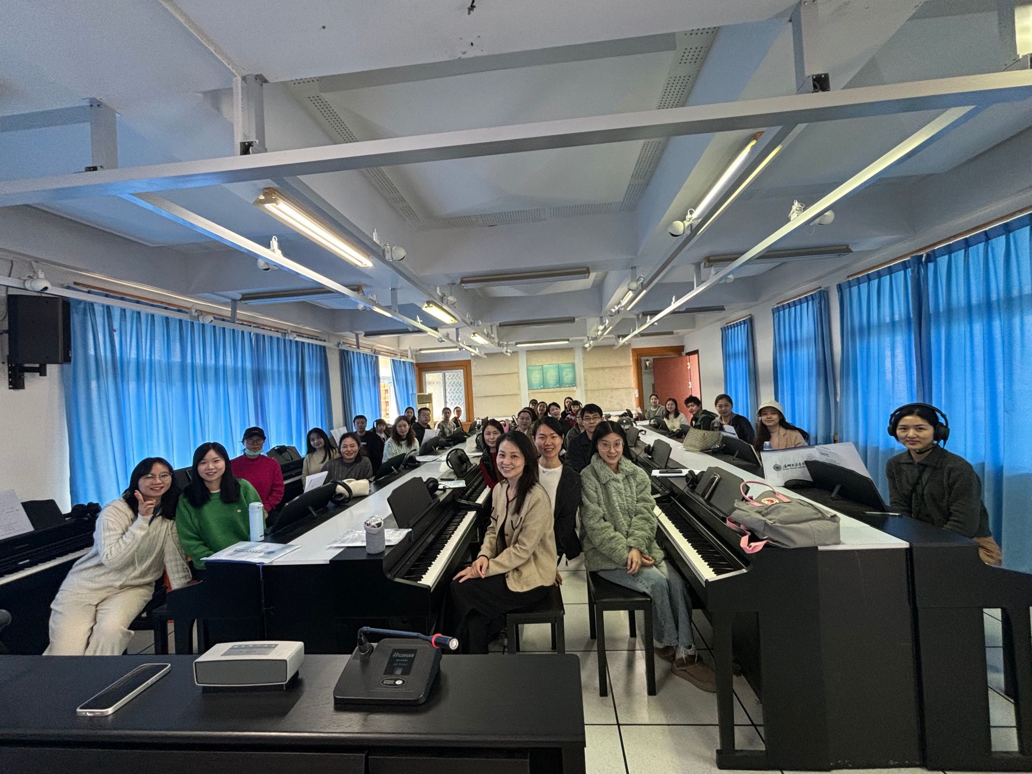 成功举办了《中小学音乐教师钢琴演奏素养与歌曲编配弹唱能力提升培养》培训班。此次培训吸引了温州地区近50名中小学音乐教师的积极参与,旨在提升音乐教师的专业素养和教学能力,扎实推进新时代中小学美育高质量发展。