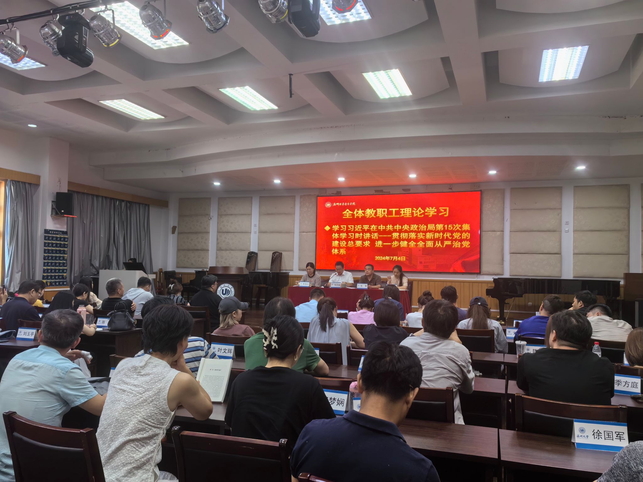 会议最后,院党委书记朱启鑫领学全体教职工进行政治理论学习。第一学习主题:学习习近平在中共中央政治局第15次集体学习时讲话---贯彻落实新时代党的建设总要求, 进一步健全全面从严治党体系。中共中央总书记习近平在主持学习时强调,新时代党的建设是以党的政治建设为统领、党的各项建设同向发力综合发力的系统工程,必须以党中央关于党的建设的重要思想、关于党的自我革命的重要思想为根本遵循,坚持和加强党的全面领导和党中央集中统一领导,贯彻落实新时代党的建设总要求,用系统思维、科学方法推进管党治党内容全涵盖、对象全覆盖、责任全链条、制度全贯通,进一步健全要素齐全、功能完备、科学规范、运行高效的全面从严治党体系。会议指出,学院将以习近平新时代中国特色社会主义思想为指导,深入贯彻党的二十大及三中全会精神,落实校党委部署,坚持严的基调,推进全面从严治党。一是要加强政治建设,提升政治判断力、领悟力和执行力。二是强化创新理论武装,加强思想建设,筑牢师生理想信念。三是要推进党组织建设,持续提升支部标准化、规范化水平,创新活动方式,增强党支部凝聚力和战斗力。四是要深入推进党风廉政建设,严格落实中央八项规定精神,强化纪律教育,筑牢廉洁防线。五是要促进党建与业务融合,形成相互促进、共同发展的局面。会议强调,全面从严治党是系统工程,需持续发力。党员干部要增强责任感和使命感,以坚定信念、有力措施、务实作风,推动全面从严治党向纵深发展,为学院高质量发展提供保障。要守牢安全底线,强化底线和风险意识,守住意识形态阵地,加强安全教育、隐患排查和风险防范,推进平安校园建设。领导班子要履行“一岗双责”,将全面从严治党贯穿教学、科研、管理全过程,确保工作实效。