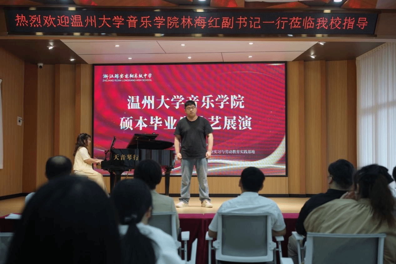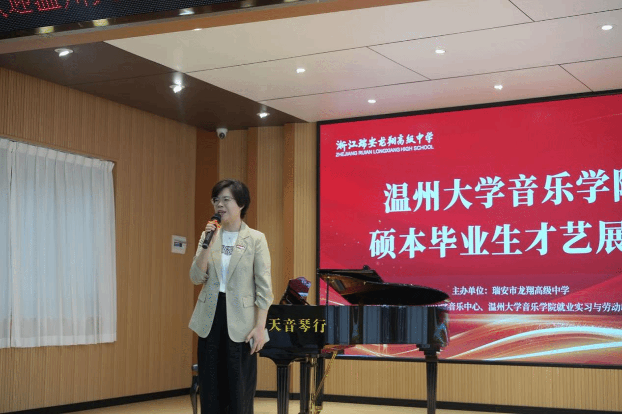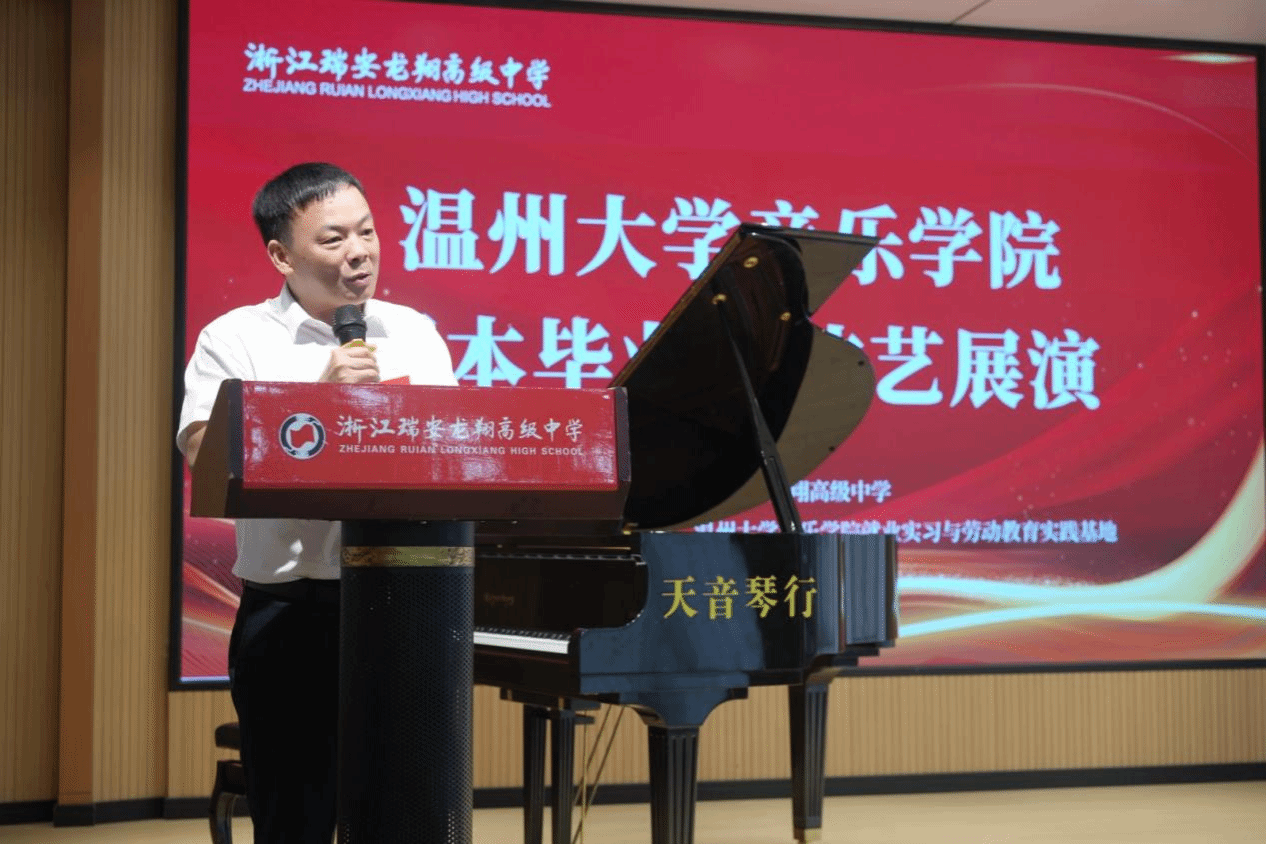 参观结束后,艺术展演在龙翔高级中学音乐厅举行,瑞安龙翔高中校长杨文发致辞,他首先欢迎色情视频