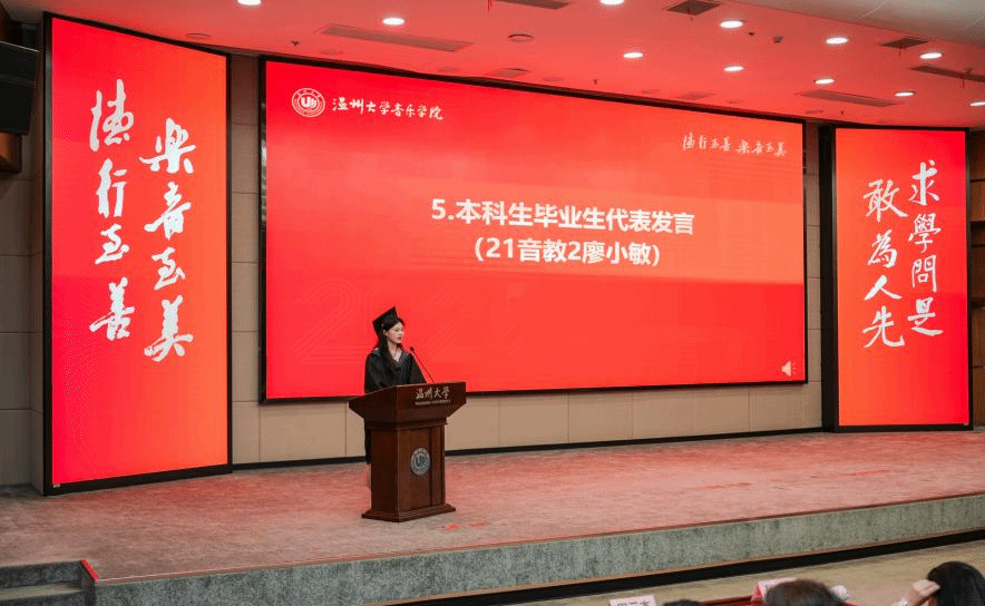 毕业生代表发言,22音研范鑫满怀感激致谢导师们的悉心指导,助其在学术研究少走弯路;提及学院浓厚学术氛围推动自我突破,直言这段经历是人生宝贵财富。21音教2班廖小敏分享自身成长故事,她表示,在温大色情视频