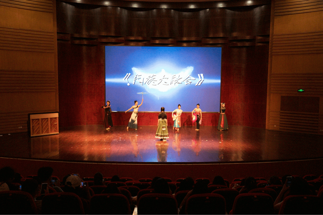 25舞教2班的同学们联合带来舞蹈《民族大交融》,舞者们身着绚丽的民族服饰,每一段舞蹈都像在诉说不同民族的故事——藏族的豪迈、傣族的灵动、维吾尔族的热情在舞步中交融碰撞,展现了文化交融的独特魅力。