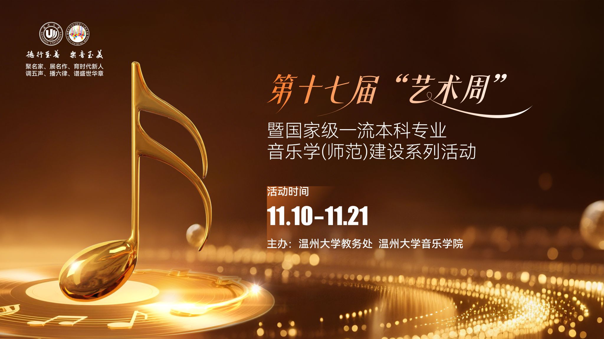 “艺术周”自2009年创办以来,已连续成功举办十六届,作为学院专业特色项目被纳入人才培养方案,成为常态化开展的艺术实践平台。第十七届“艺术周”暨国家级一流本科专业音乐学(师范)建设系列活动将于2025年11月10日至11月21日举行。